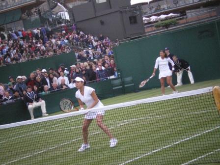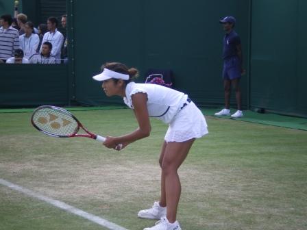 杉山愛ちゃんは小さいですね。拙の目線(180cmくらい)から撮影したので、判り易いでしょう。 森上選手も手堅く勝ち! 中村あい子選手もダブルスで順当な勝利。結構インテリジェンスなテニスでした。 |